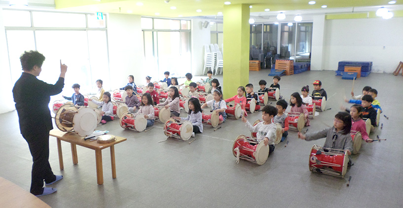 장구는 음악적 감각 및 능력의 신장 뿐만 아니라 감성 지능과 두뇌, 언어, 신체발달 등 전인적 발달에 도움을 주며 다양한 활동 영역과 생활 주제에서 연계, 확장되어 경험함으로써 통합적인 교육이 이루어지는데 목적이 있습니다.