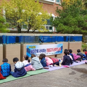 태화강에 서식하는 민물고기 전시회를 보고 그림을 그려요