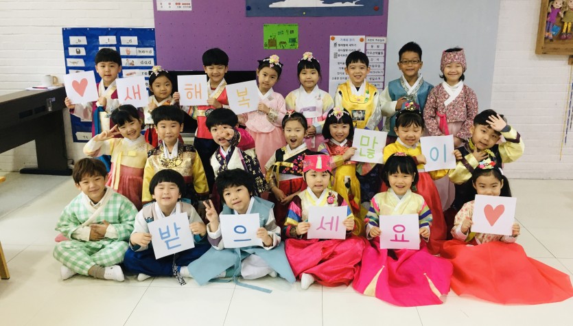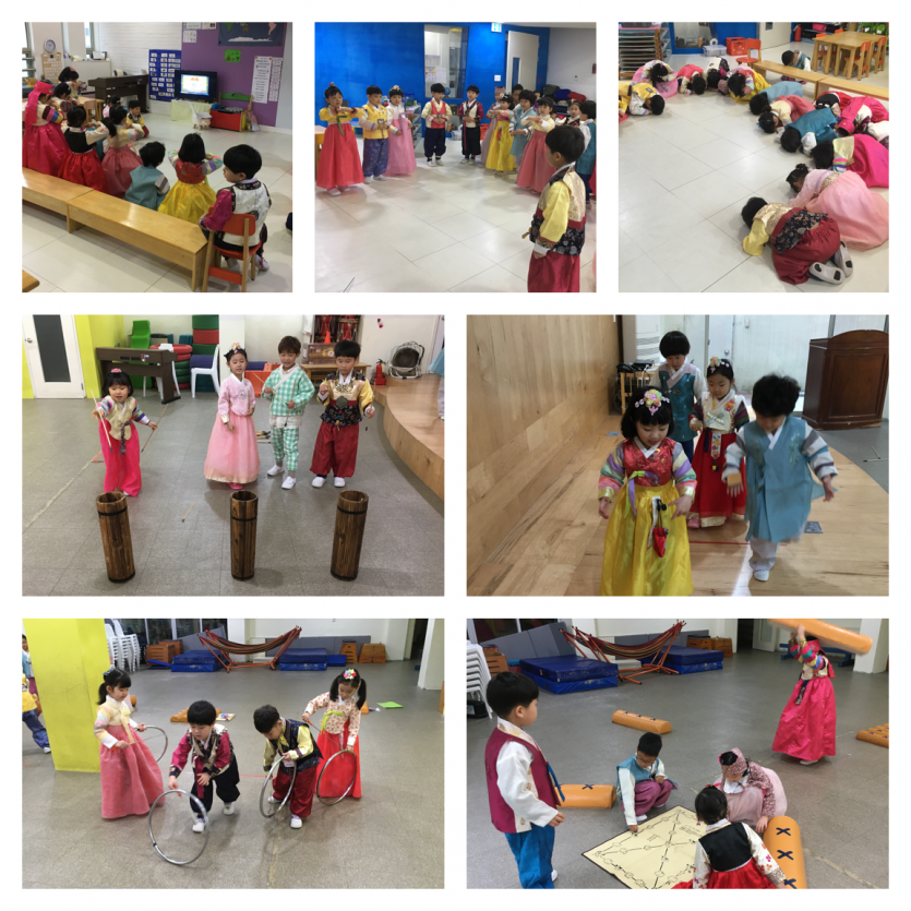 한복을 곱게 차려입고 등원한 조반 아이들.