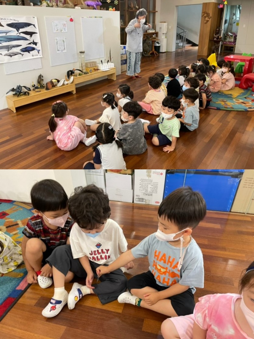 새의 깃털도 직접 만져보며 수업을 들어서 친구들의 흥미도 쑥쑥 올라갔답니다 ㅎㅎ