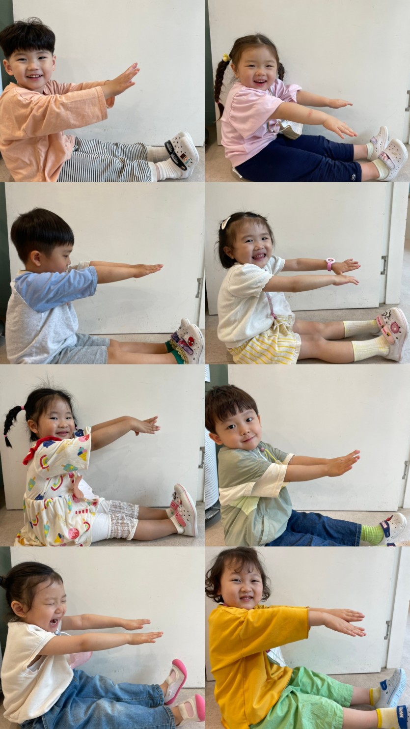 수수반은 한글 자음을 하나씩 배우고 있어요 ㄷ을 배우고 몸으로 직접 ㄷ을 만들어보았어요
