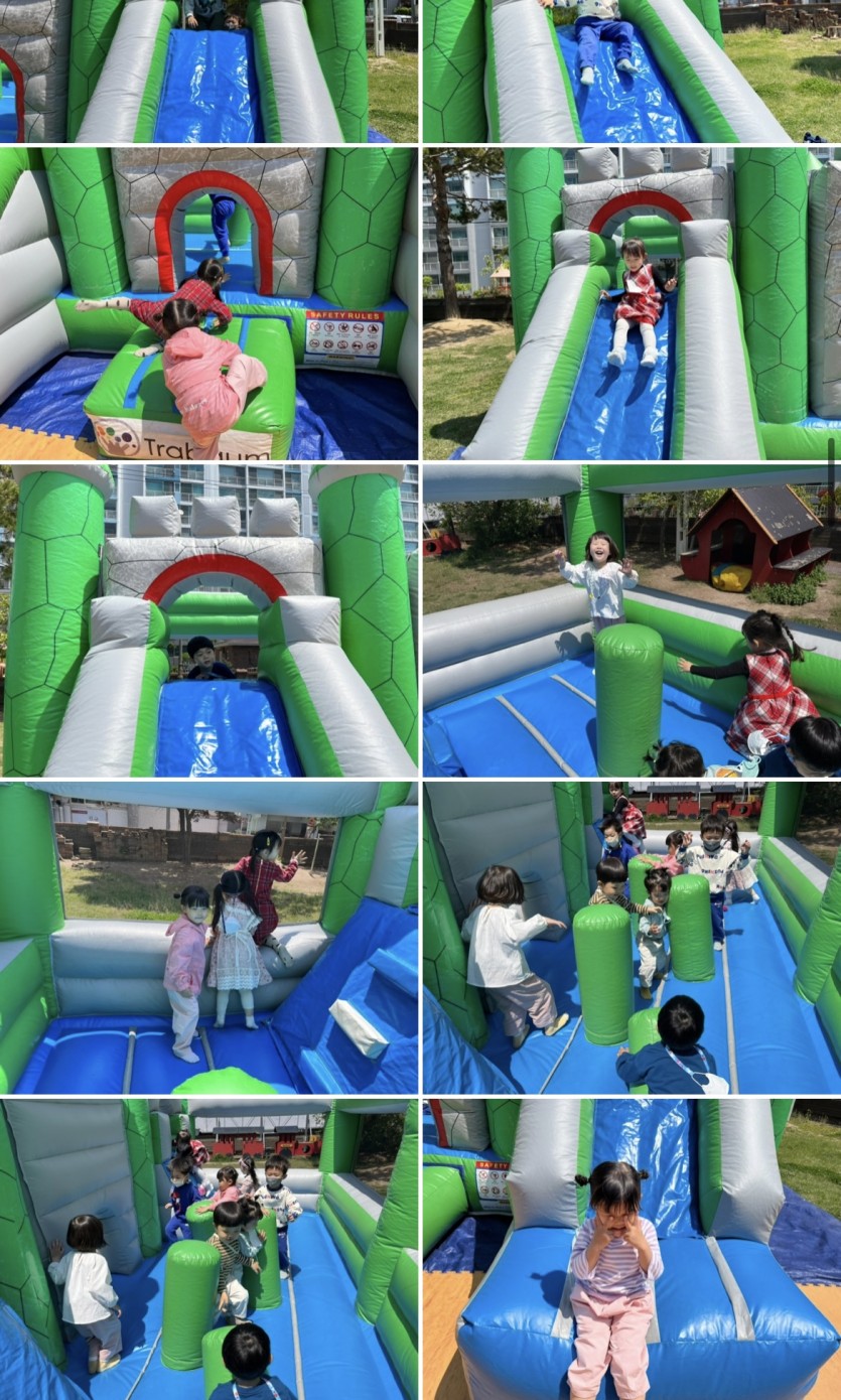 바람개비를 만들고 나서 친구들과 에어바운스에서 신나게 뛰어놀았어요!